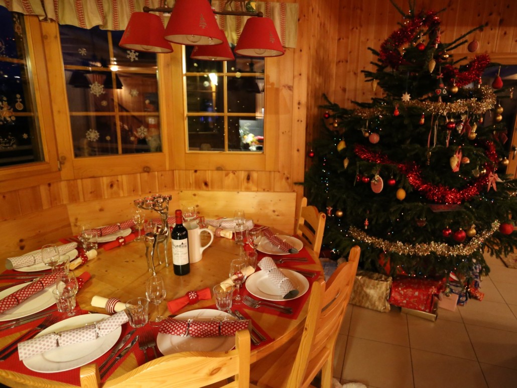 Cosy dining area with large round dining table, perfect for family meals and board games